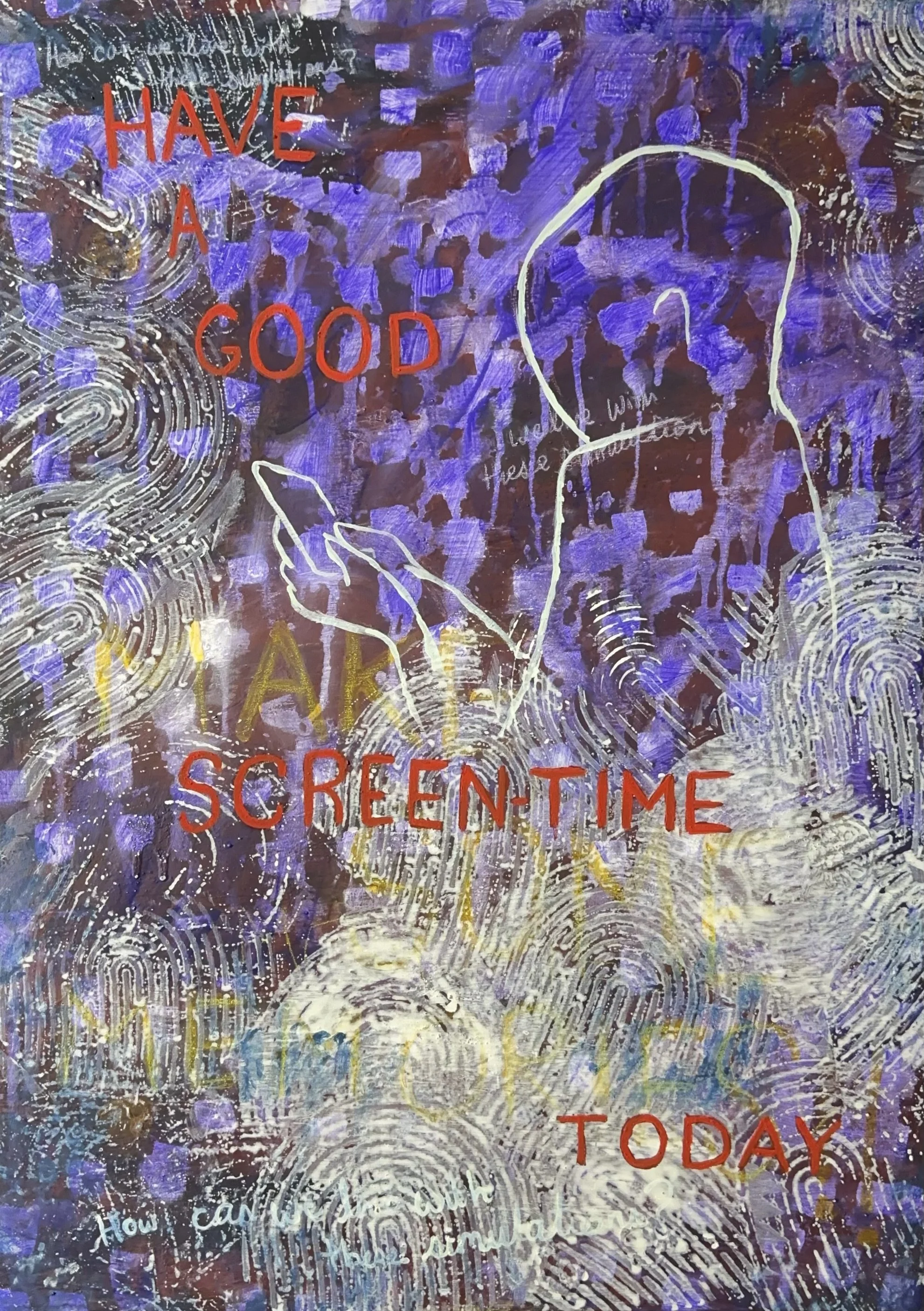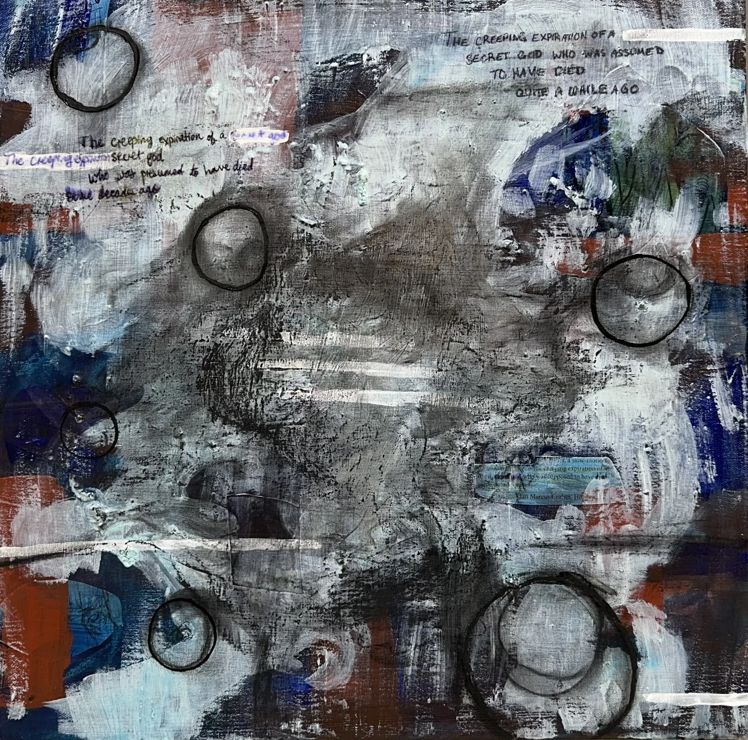 pigment, resin, oil, ink, and ballpoint pen on canvas