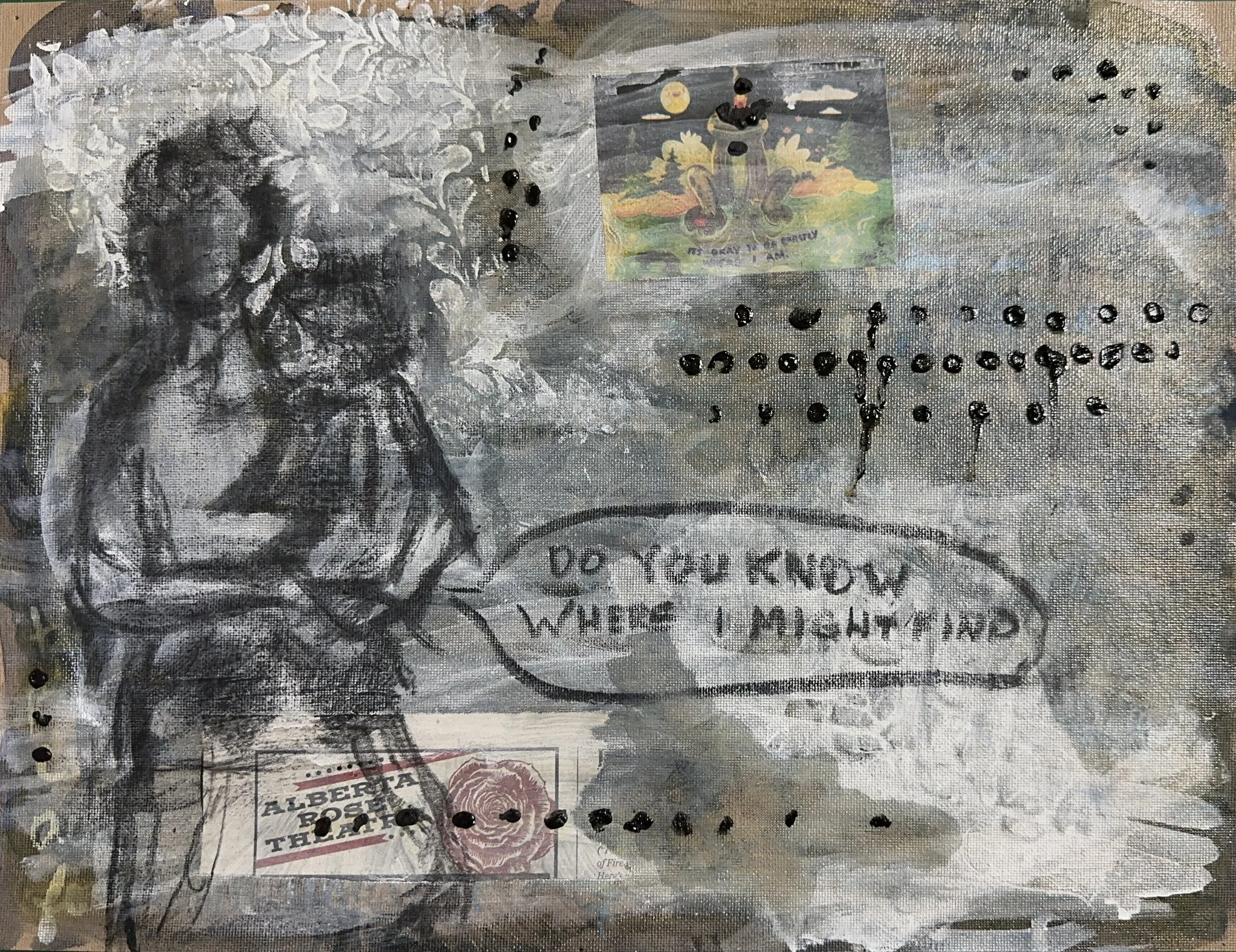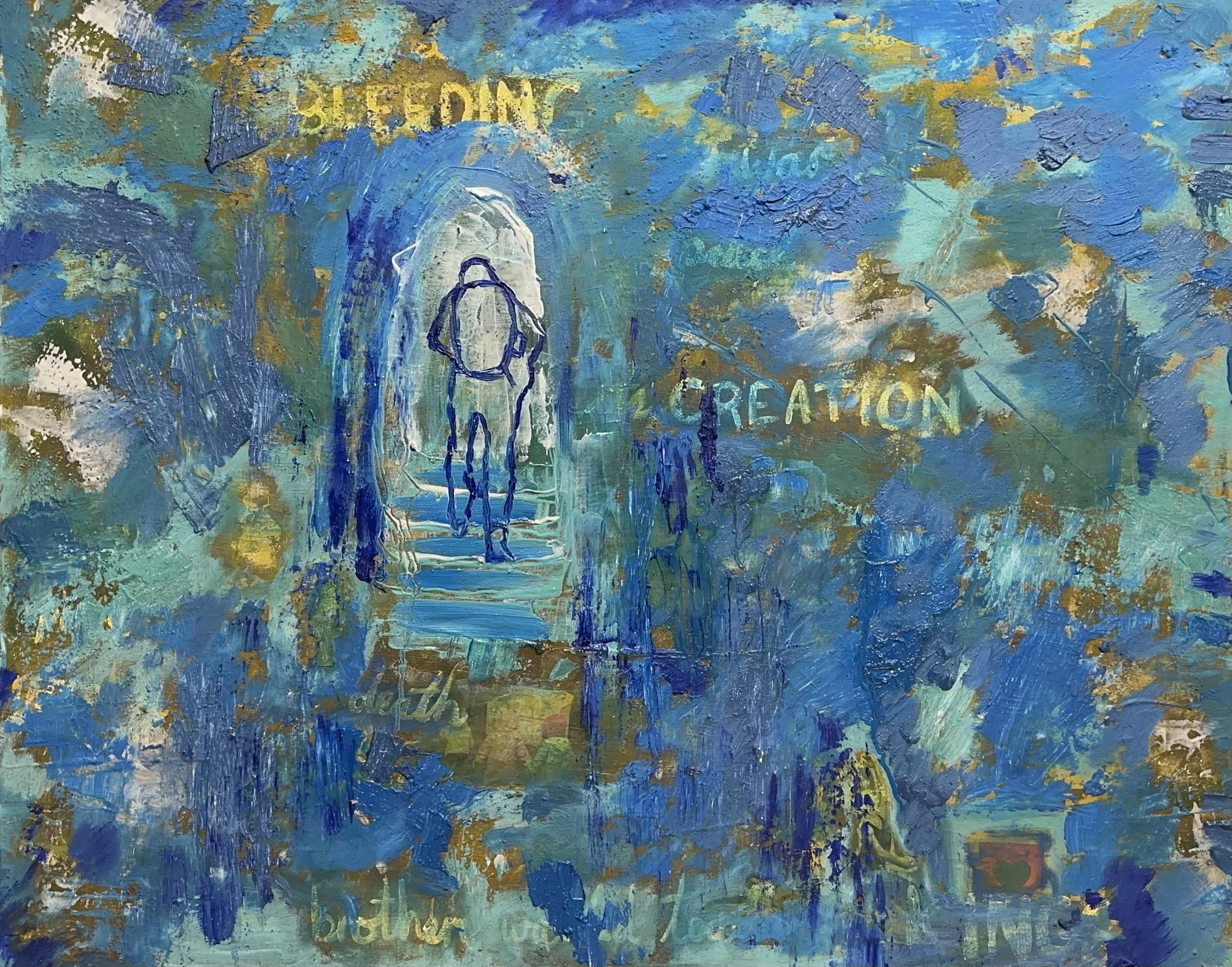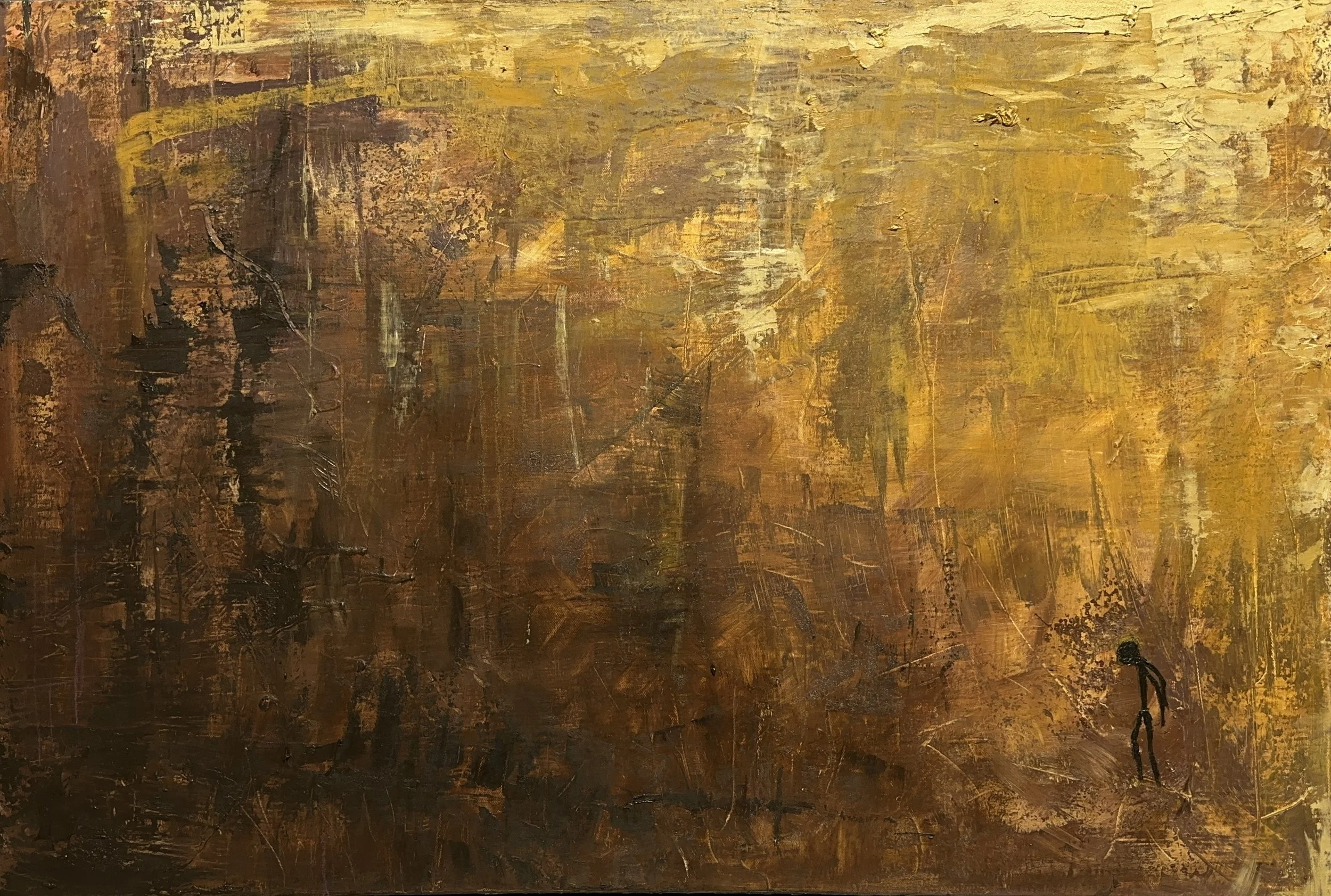 pigment, gum arabic, plant-based resin, charcoal, collage, and linseed on loose canvas