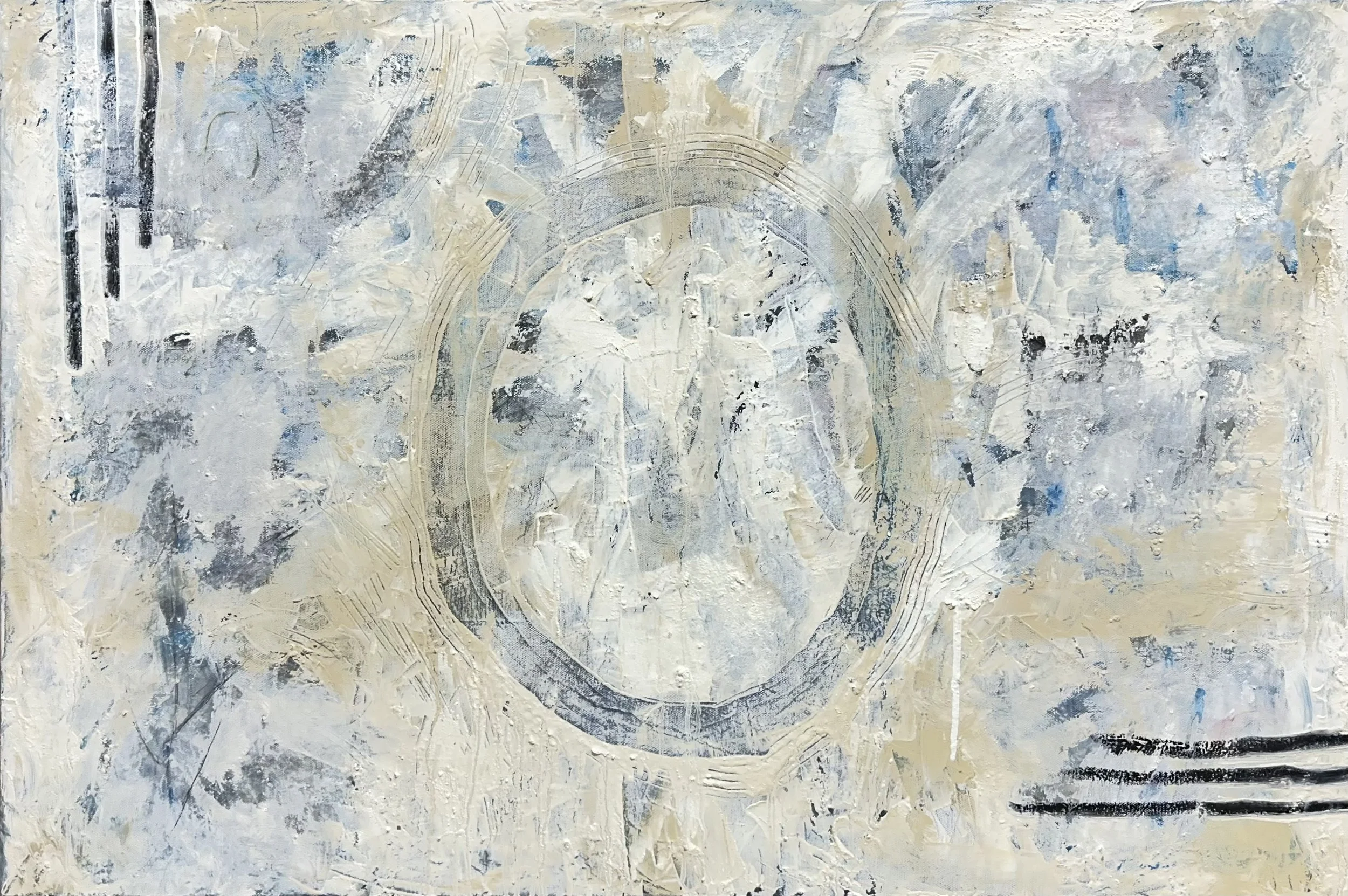 pigment, linseed oil, resin, collage, water damage, oil stick, and oil pencil on canvas